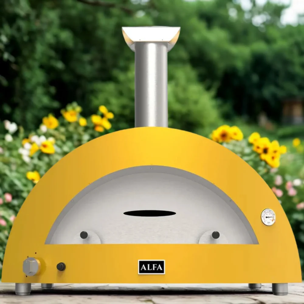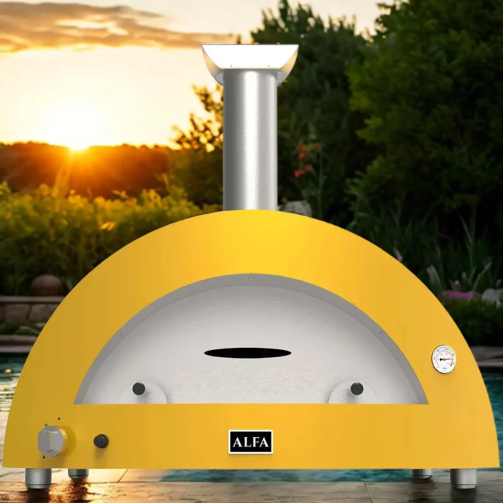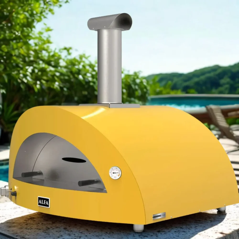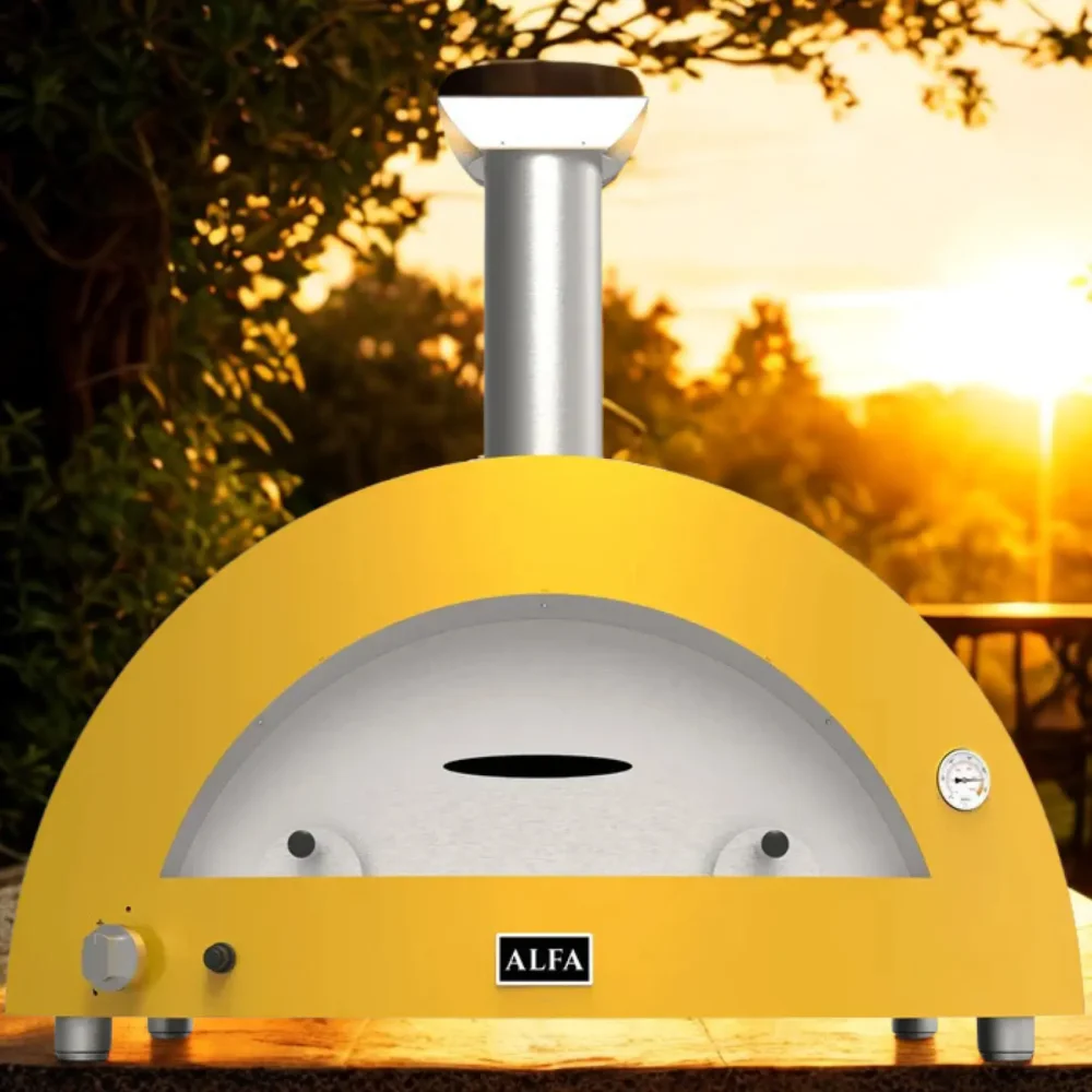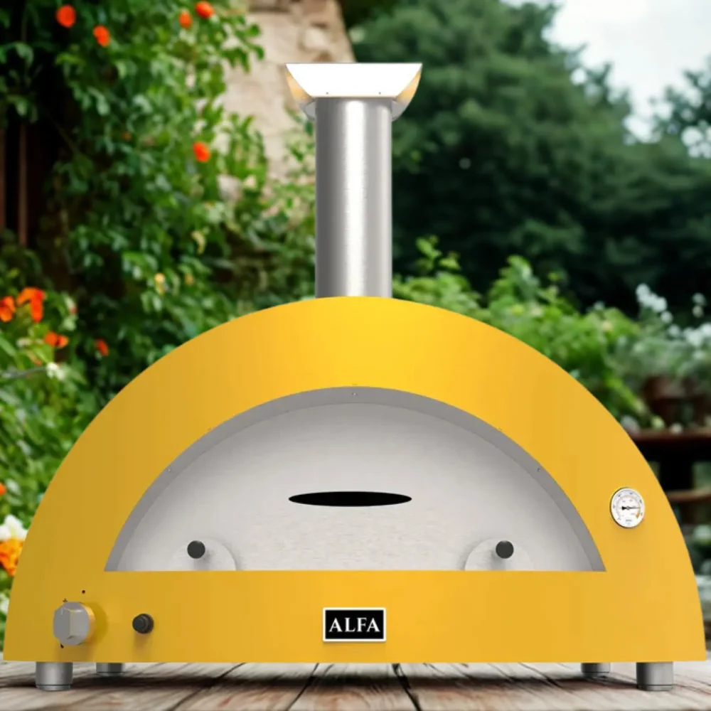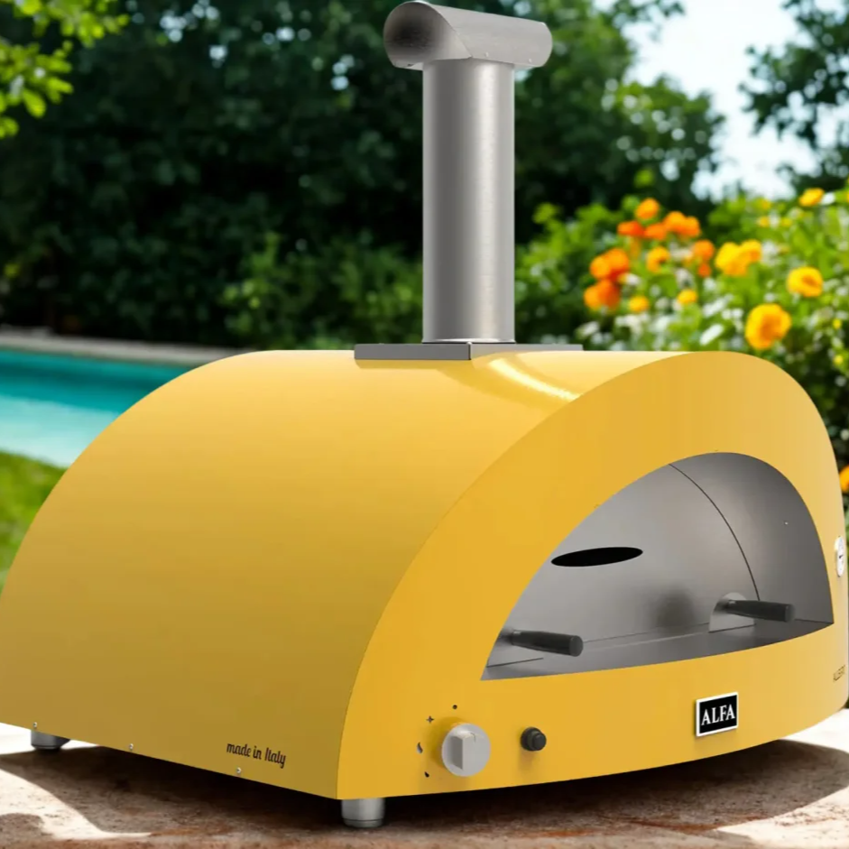 Hybridní pizza pec Alfa Forni 5 PIZZE Hybrid NG nebo-li na zemní plyn. Jako palivo můžete použít ale i dřevo. Úžasná žlutá barva. Celý popis