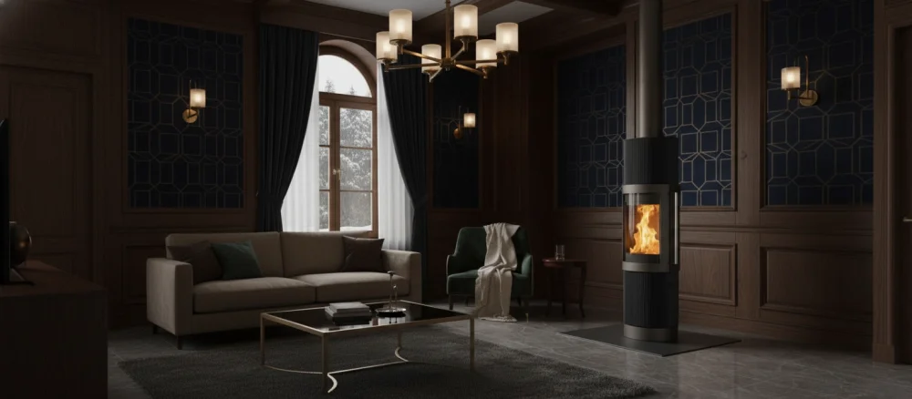 Krbová kamna Hase Elvas s keramickým obkladem se svislou strukturovanou texturou. Kompaktní kruhový design bude elegantním doplňkem každého interiéru. Panoramatické prosklení nabízí působivý výhled na oheň, otočná konstrukce umožňuje flexibilní směrování tepla. Účinnost přes 80 %, vyrobeno 100% v Německu.